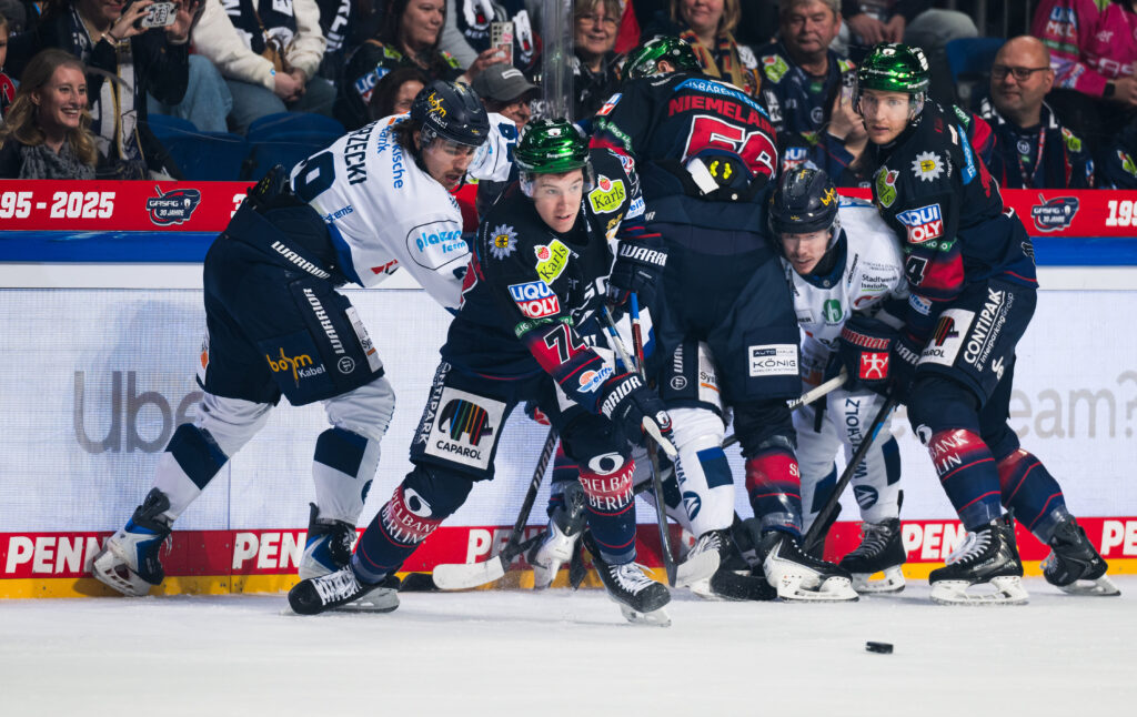 Iserlohn riskierte am Ende nochmal alles – Auszeit und Goalie raus. Doch das nutzten die Hauptstädter zur endgültigen Entscheidung. Mit der Schlusssirene versenkte Markus Vikingstad die Scheibe im verwaisten Iserlohner Tor – 5:2 (60.). Danach war Schluss und die Erleichterung sichtbar zu spüren. Zumal Bremerhaven und Wolfsburg erneut für die Eisbären gespielt haben. Die Eisbären haben aktuell nur noch einen Zähler Rückstand auf den Sechsten Bremerhaven. Und die Pinguins sind am Sonntag der nächste Gegner.