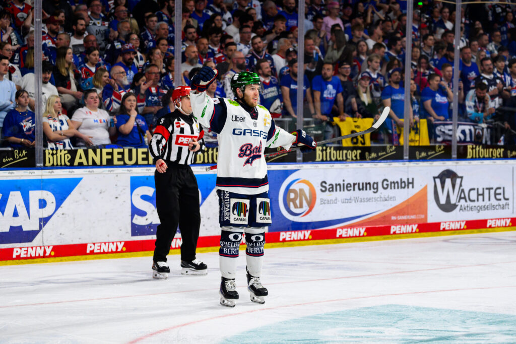 Die Eisbären schüttelten sich einen kurzen Moment, zogen danach aber ihren Gameplan strikt durch. So entwickelte sich eine hart umkämpfte Partie auf Augenhöhe, in der es rasant hin und her ging. Die Eisbären fanden Mitte des ersten Drittels die Antwort durch Eric Mik – 1:1 (11.). Die Vorlage kam von Leo Pföderl, der damit seinen 30. Finalscorerpunkt einfuhr. Was für eine Statistik der Nummer 93!