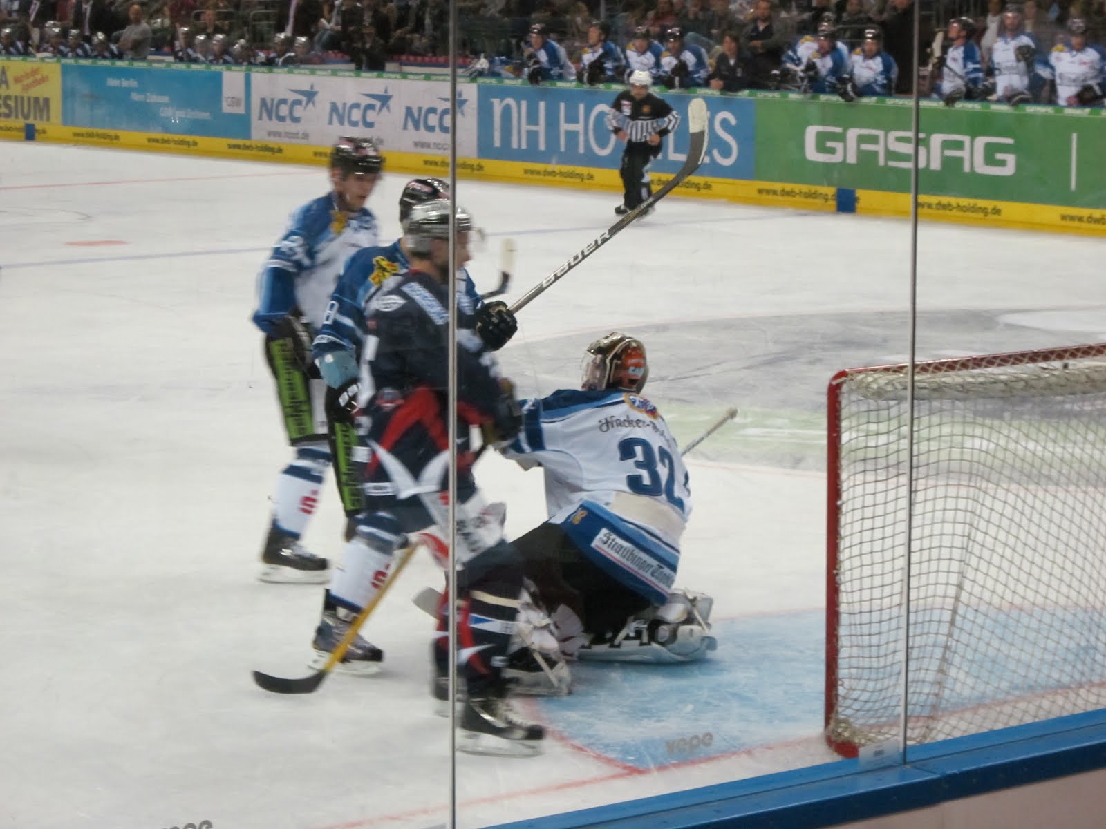 Hinein ins erste Saisonspiel. Beide gingen von Anfang an ein hohes Tempo. Es ging gleich hoch her vor beiden Toren. Sowohl Rob Zepp (Berlin) als auch Jason Bacashihua (Straubing) standen sofort im Mittelpunkt des Spiels.